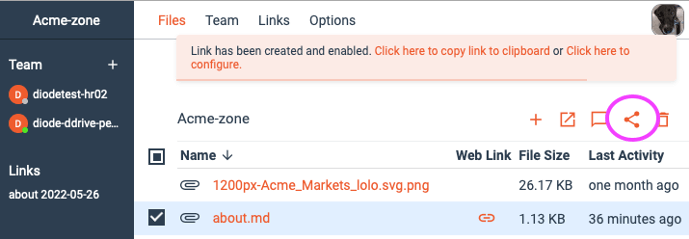 If you are taking notes for a client or partner, you can easily share a link to your notes with them even if they don’t have Diode Drive installed. The web-link feature does that with a click of the share button: