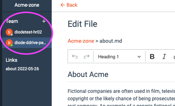 Diode Drive is organized in Zones. If you are collaborating with a team, you can have a Zone that has many other files and information in it, with notes interspersed in the folders, that is shared with your team.